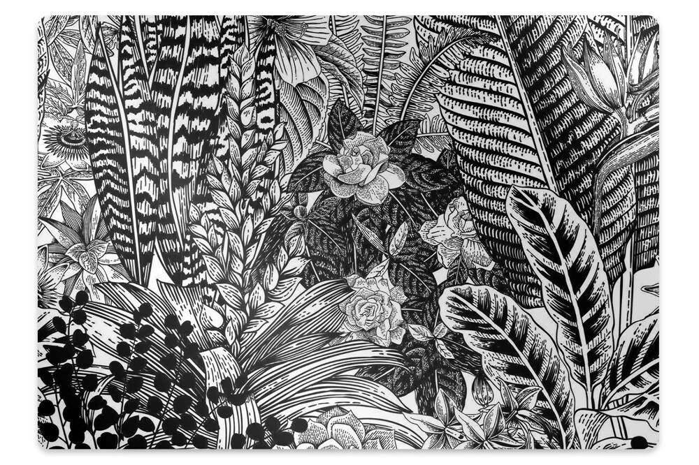 Chair mat Black and white leaves 100x70 cm 2 cm