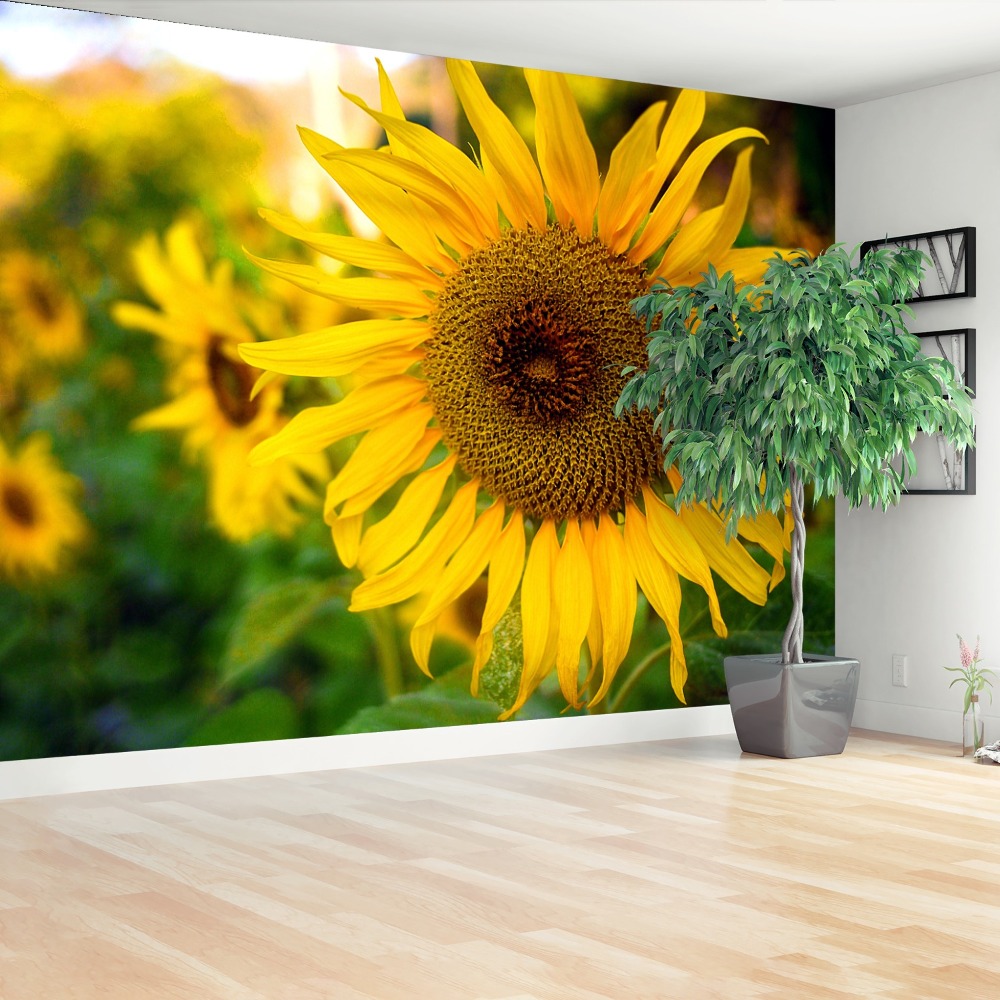 Wallpaper Sunflowers yellow Non-woven Wallpaper 40.94in x 27.56in (104x70 cm)