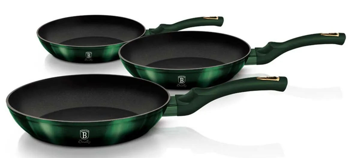 Komplet zielonych patelni z powłoką granitową - Fisko 9X