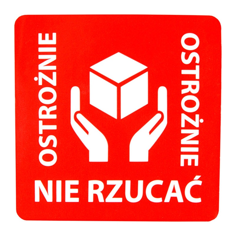 "Ostrożnie nie rzucać" Etykieta ostrzegawcza 50x50mm 1000szt 40mm
