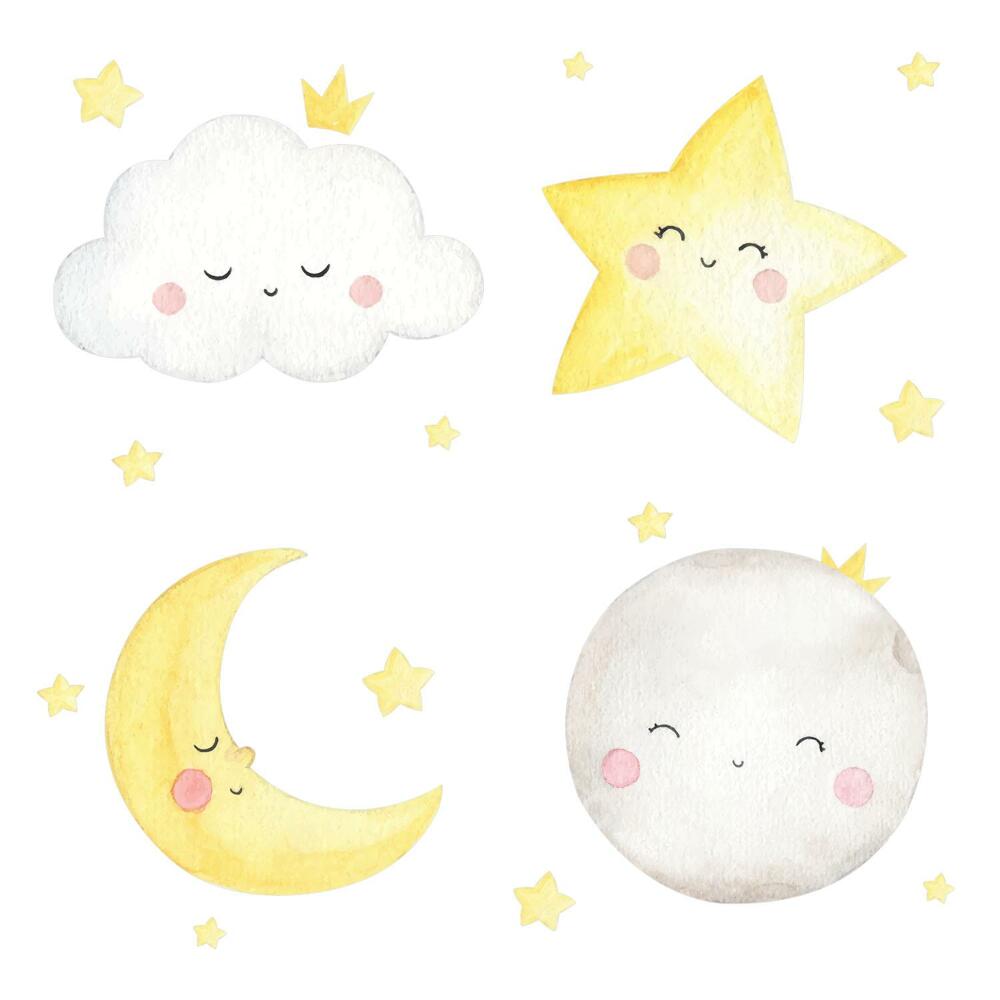 Wandsticker 100x124 Mond und Wolken in Pastellaquarell 100 cm