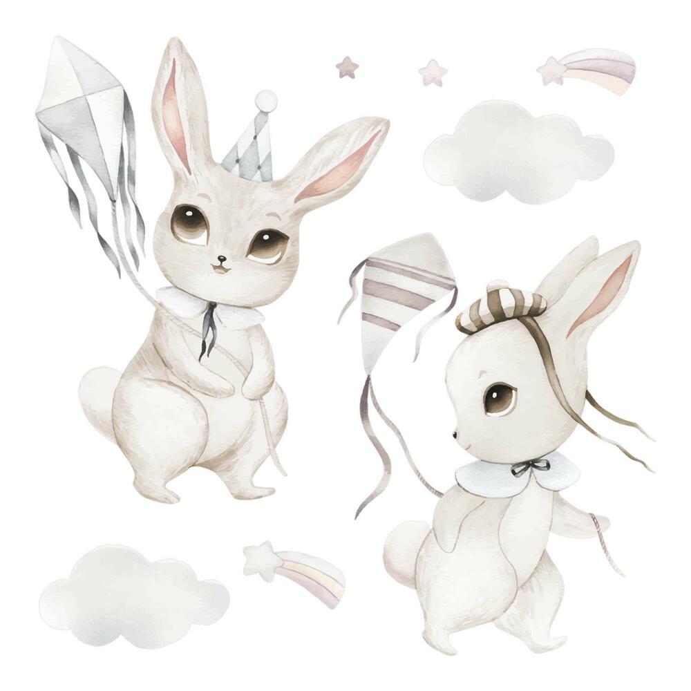 Wandsticker 60x86 Hasen mit Drachen im pastellfarbenen Boho-Stil 60 cm