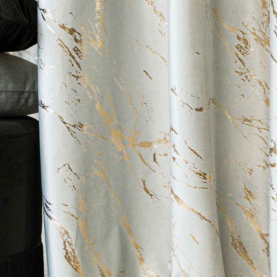 Zasłona gotowa na taśmie MARMA 140x250 pastelowy szary ze złotym nadrukiem