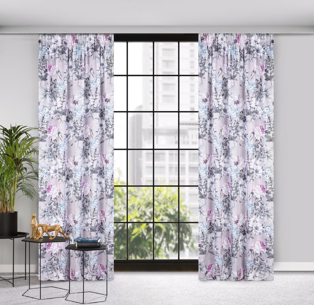 Zasłona gotowa na taśmie HONEY 140x270 Eurofirany beżowa / fioletowa