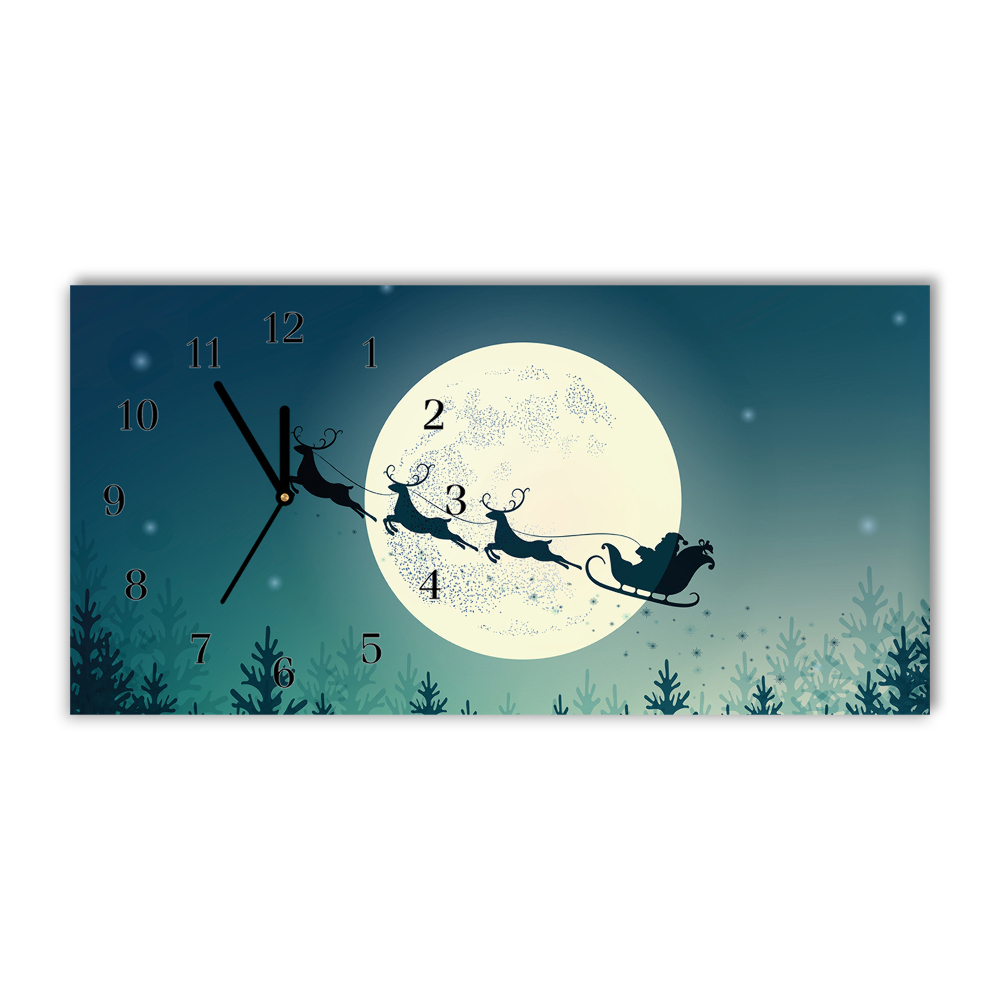 Zegar ścienny Poziomy Świety Mikołaj Sanie Święta 60x30 cm Czarne wskazówki