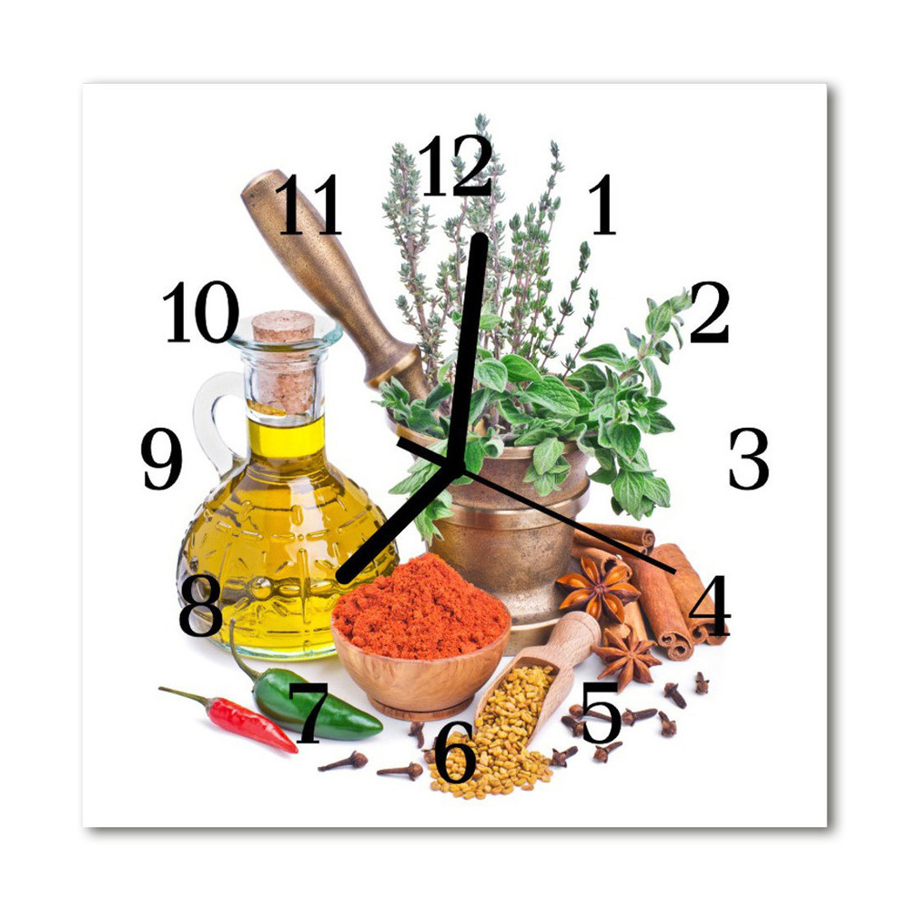Zegar szklany kwadratowy Przyprawy 30x30 cm