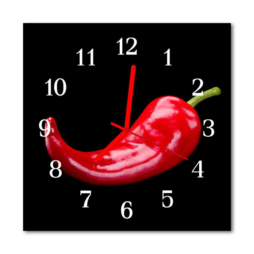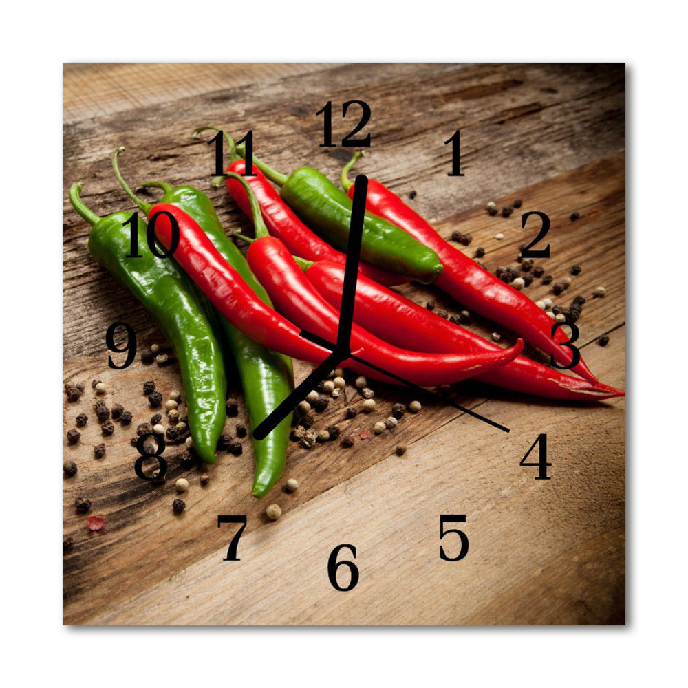 Zegar szklany kwadratowy Papryczka chilli 30x30 cm