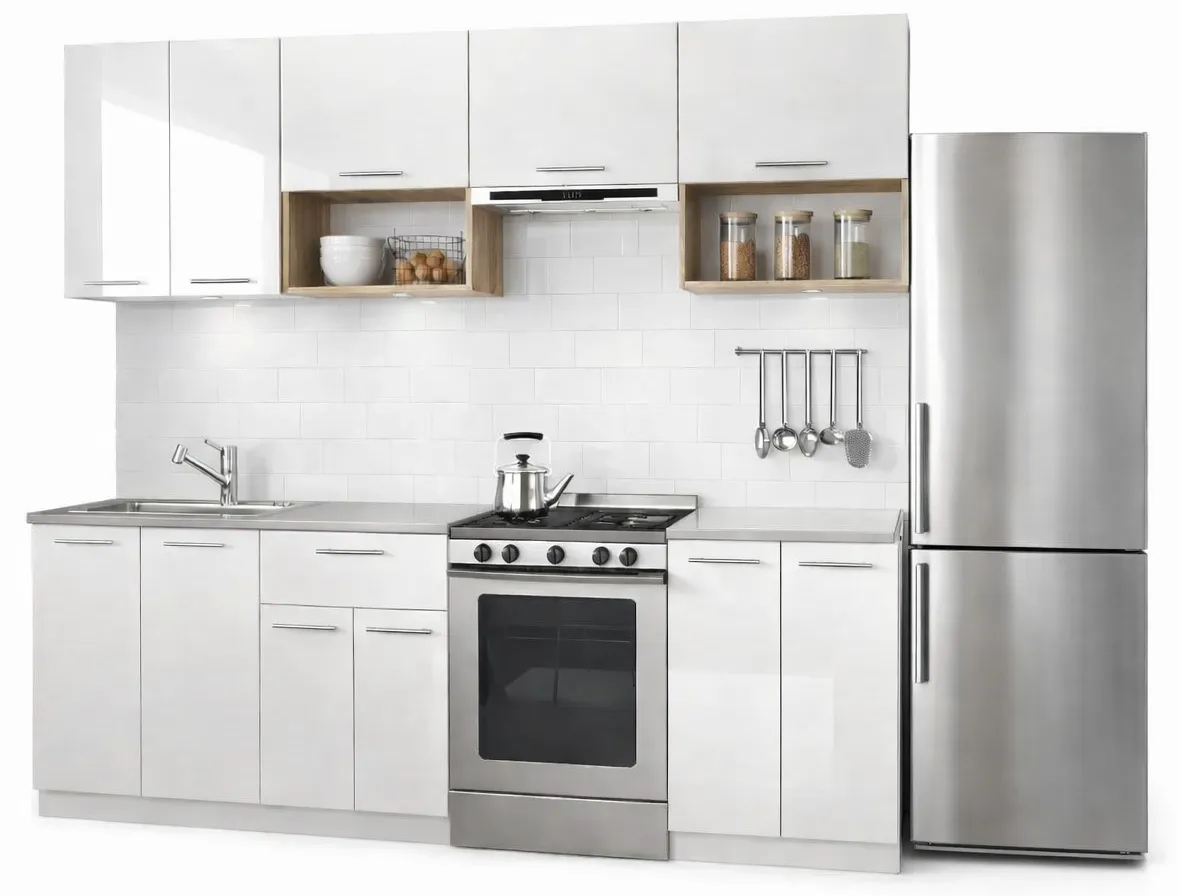 Zestaw mebli kuchennych biały połysk + dąb sonoma - Marit